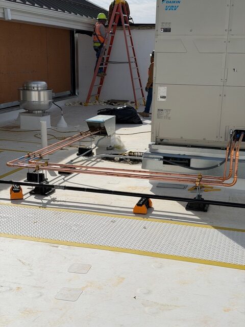 Our job is to ensure the system fits the building, supports the space’s intended use, and is installed in a way that keeps the project moving. That includes reviewing plans, coordinating placement, installing essential equipment and ductwork, connecting controls, and preparing the system for startup.